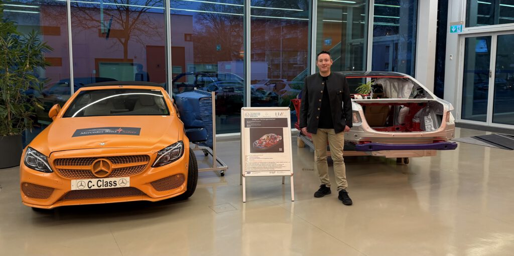 Heute war Zacharias Schwarzwälder, Mechlab-Diplomand von 2012, von der Firma Mercedes-Benz zu einem Gastvortrag zu Besuch. Die Studierenden erfuhren viele Details über die Freigabe von komplexer Fahrzeugsoftware. Besonders spannend waren natürlich die Berichte über Erprobungsfahrten. Eine kurzfristig anberaumte Fahrt von Stuttgart zum Nordkap mit einem E-Fahrzeug-Prototyp hat auch heute noch einen Hauch von Abenteuer. Der mitgebrachte Versuchsträger sorgte für weitere spannende Diskussionen. Das Mechlab-Team hofft natürlich auf eine Fortsetzung der Gastvorlesung, um die Kooperation langfristig zu etablieren.