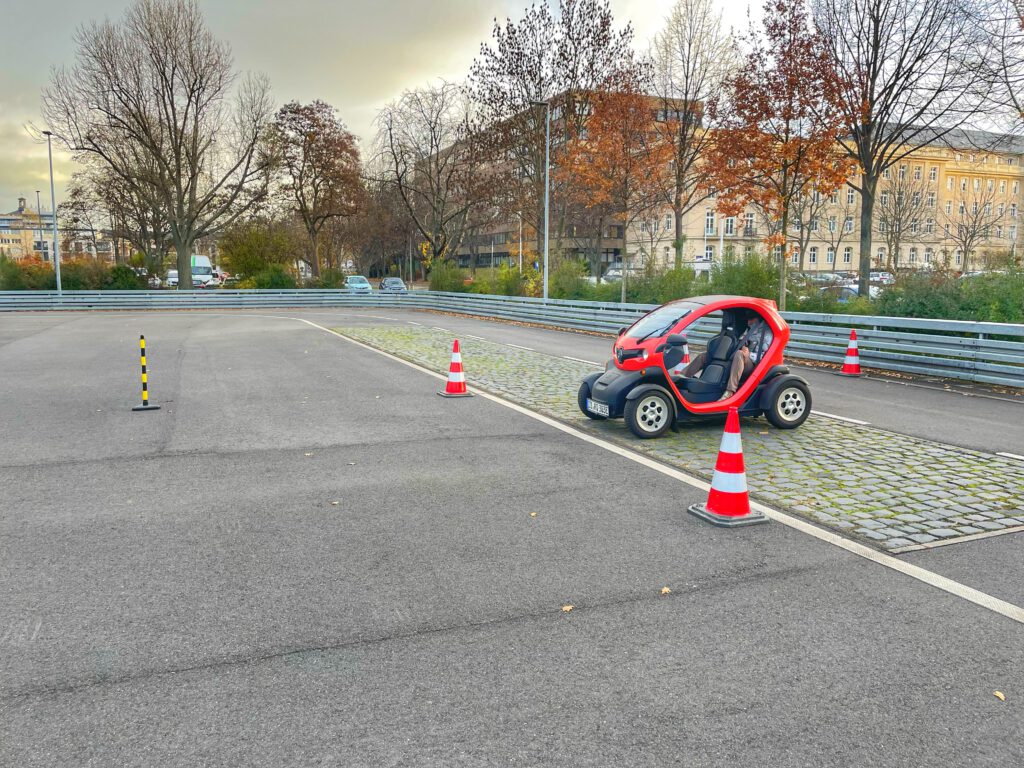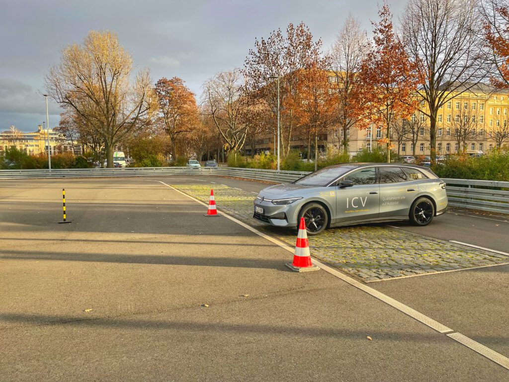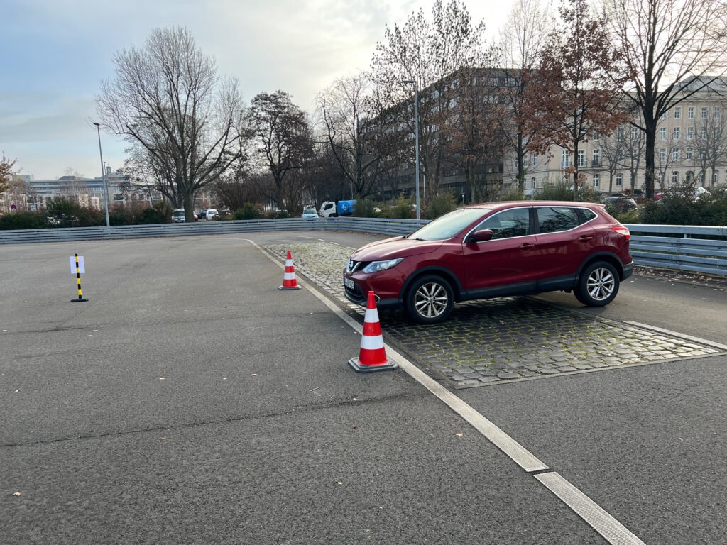 Dabei geht es um mehrere Prüfungen bei einer kurzen Testfahrt, die im Rahmen der periodischen Hauptuntersuchung Aufschlüsse über Fahrwerk und Bremse geben sollen. Um die Datenbank der FSD Fahrzeugsystemdaten GmbH systematisch zu erweitern, wurden 4 verschiedene Testabschnitte eingerichtet.Nachdem zunächst alle Studierenden mit dem Skoda Enyaq den Test absolviert hatten, gab es drei Studierende, die ihre Privatfahrzeuge testen wollten. Vielen Dank an dieser Stelle für die Bereitstellung.