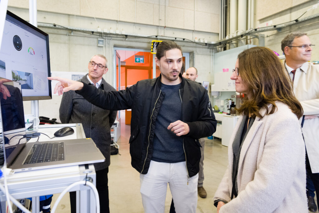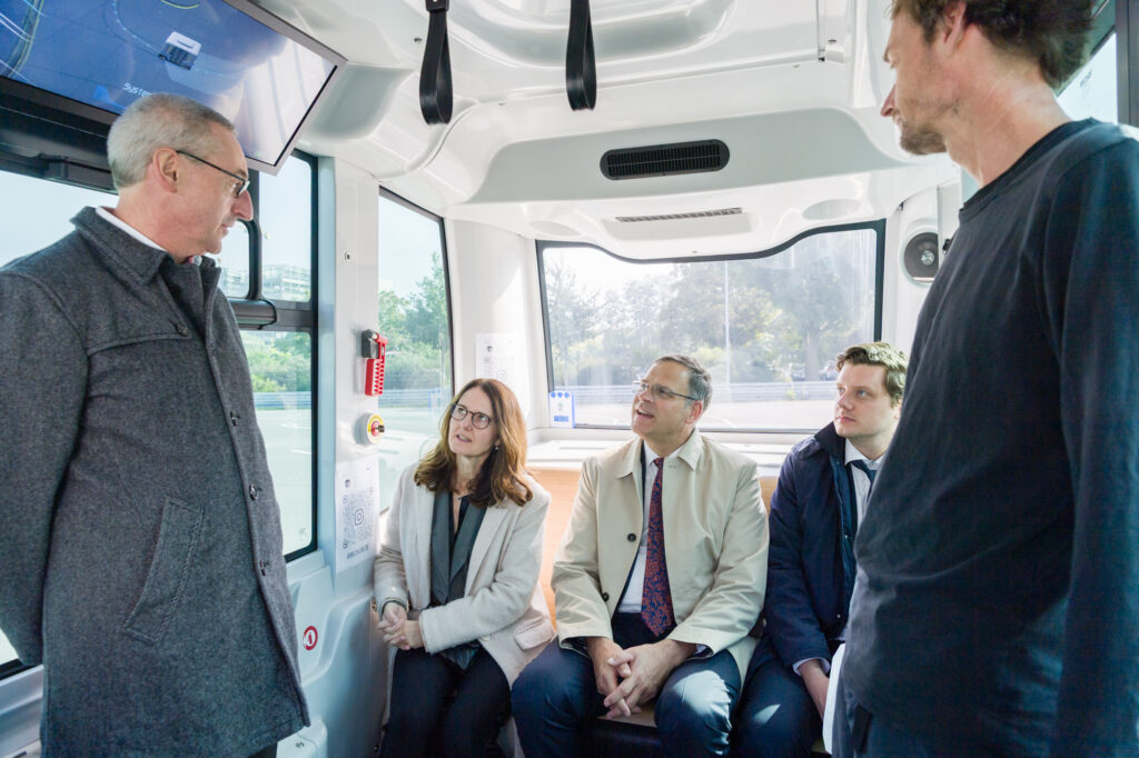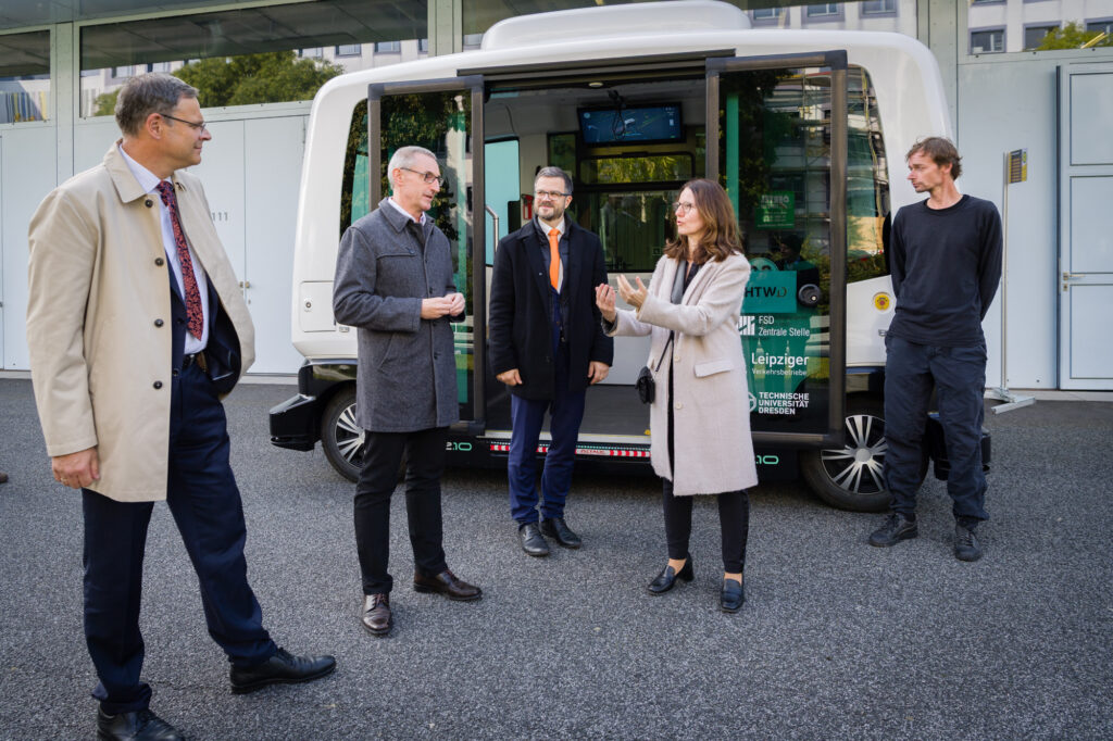 Am 02.10.2025 besuchte Frau Prof. Grassmann, Staatssekretärin im sächsischen Wissenschaftsministerium, die HTW Dresden. Den Abschluss bildete eine Fahrt im automatisierten Shuttle. Weiterhin zeigten die 4 slowenischen Studenten die Ergebnisse des 2. FAMNIT/HTDW-Hachathons.